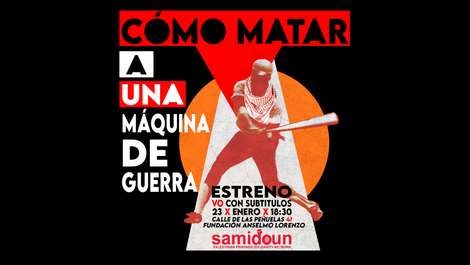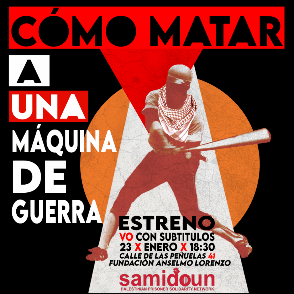 El viernes 23 de enero, a las 18:30, tendrá lugar el acto Cómo matar a una máquina de guerra, en el cual se proyectará un documental sobre el colectivo Palestine Action. Posteriormente, se celebrará una charla con activistas de Samidoun acerca del genocidio llevado a cabo por el estado de Israel en Palestina y la represión ejercida sobre las distintas redes de protesta y apoyo al pueblo palestino.