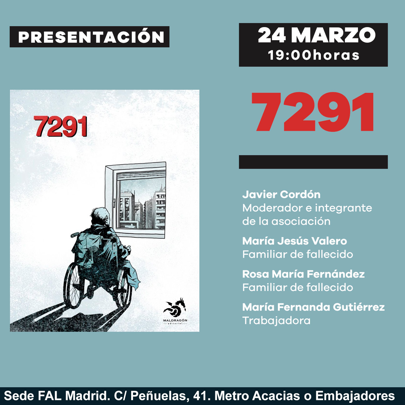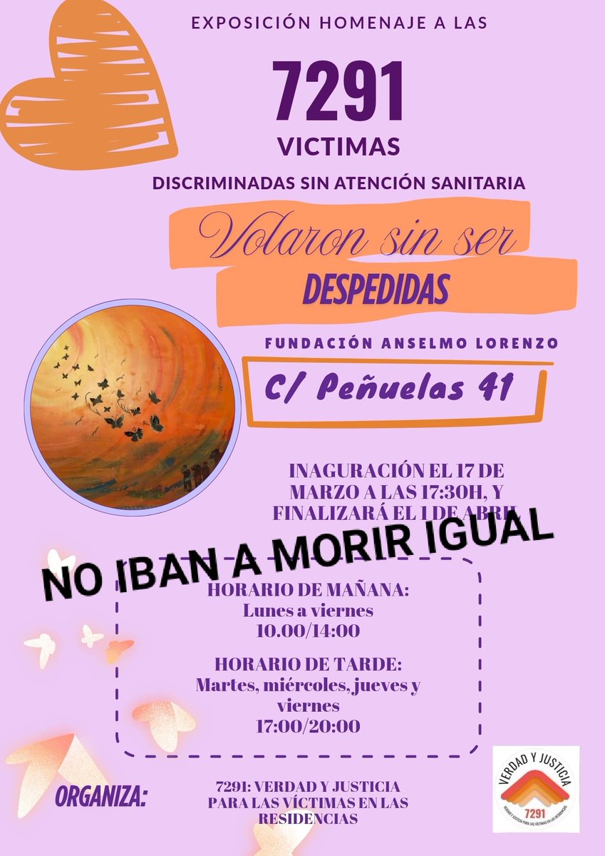 Fundación Anselmo Lorenzo C/ Peñuelas, 41, Madrid, SpainEl 17 de marzo se inaugura la exposición Homenaje a las 7291 víctimas discriminadas sin atención sanitaria. El acto inaugural contará con la presencia de integrantes de 7291: Verdad y Justicia para las víctimas en las residencias, asociación que continúa luchando por la verdad y reparación por la muerte indigna de las personas excluidas debido […]